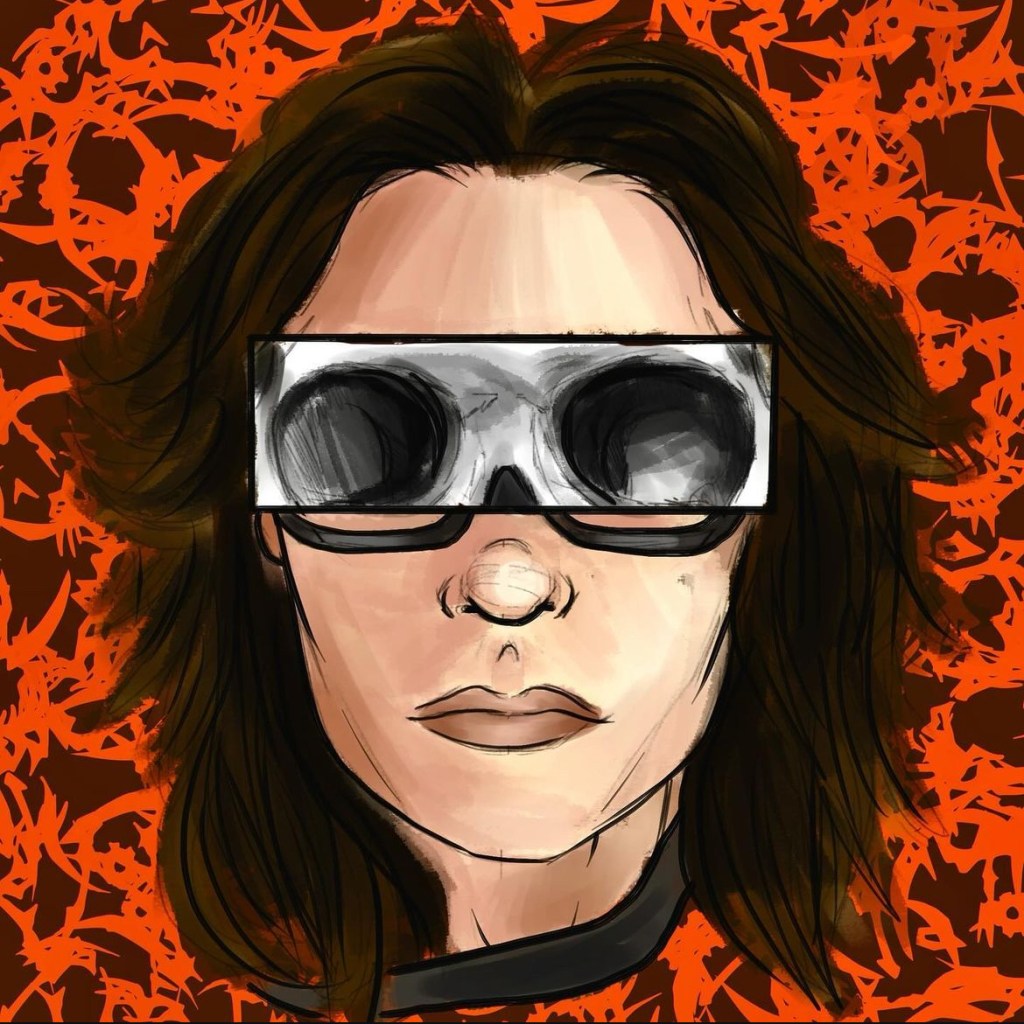 This is a self portrait I made with a sort of x-ray box going on over my eyes as a metaphor for looking in the mirror and sometimes not feeling like that is me/seeing myself but not feeling like myself. This was a personal project for fun/practice. The main goal of this piece was to practice semi-realism while also adding thick black lines to make it more stylized. Software used: Krita.